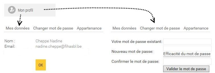 En cliquant sur le menu supérieur 'Mon Profil' vous pouvez modifier